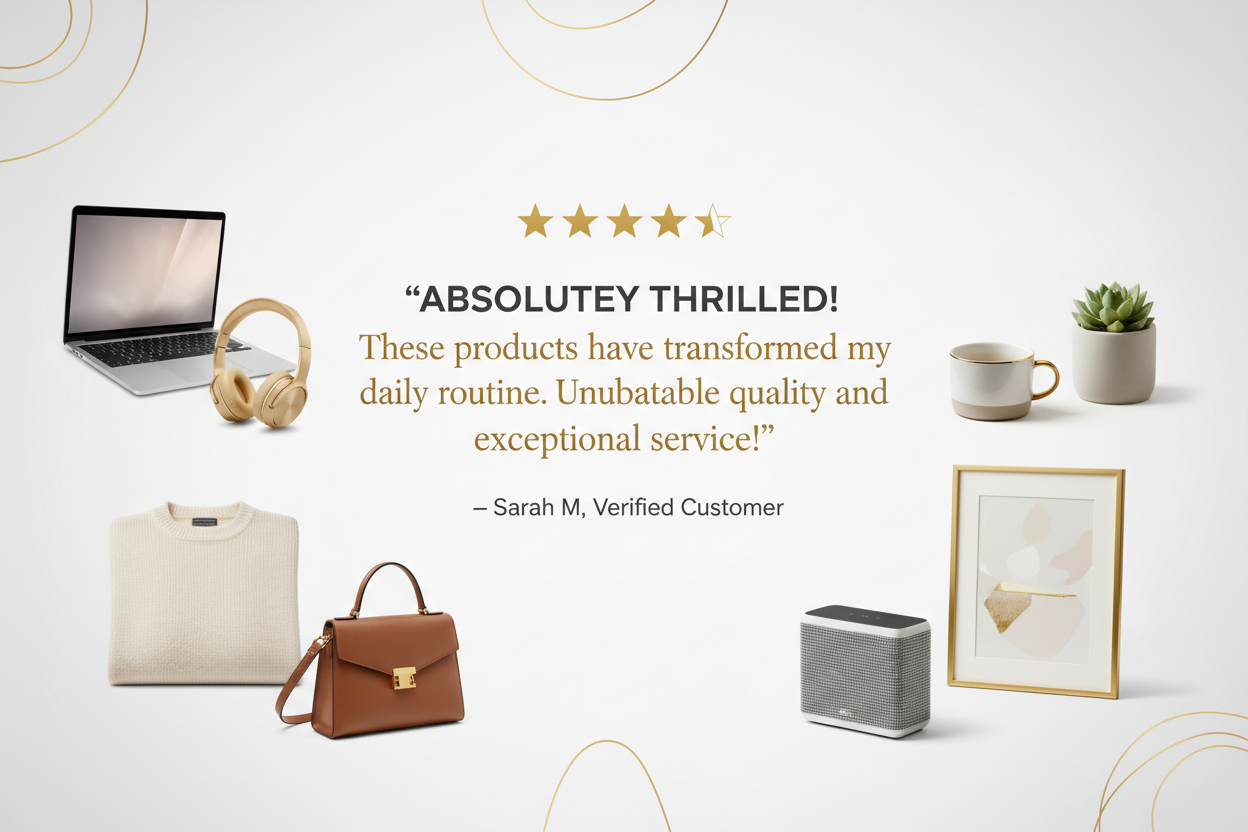 Shop now“Fast delivery, amazing quality, and products that truly stand out. Love shopping here!”