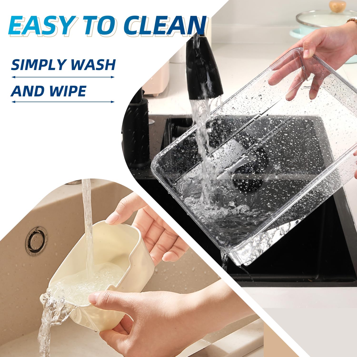 - 【Caution】The large clear container with lid, made from food-grade PET material, should not be cleaned with hot water due to the material’s properties. It is not dishwasher-safe but can be easily hand-washed