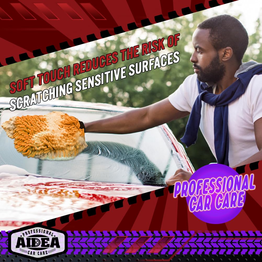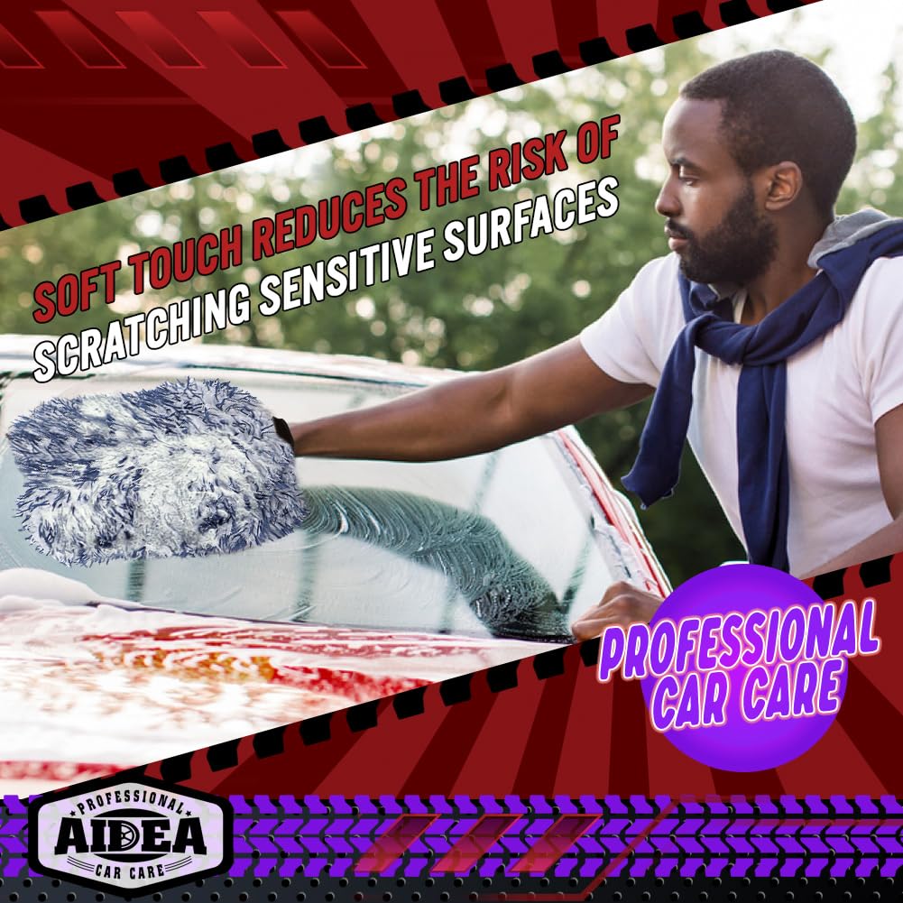 - EXTRA PLUSH AND ABSORBENT - Premium AIDEA car wash gloves are extra fuzzy with thick, high-density caterpillar threads; effectively retain soap and water for easier and faster car wash