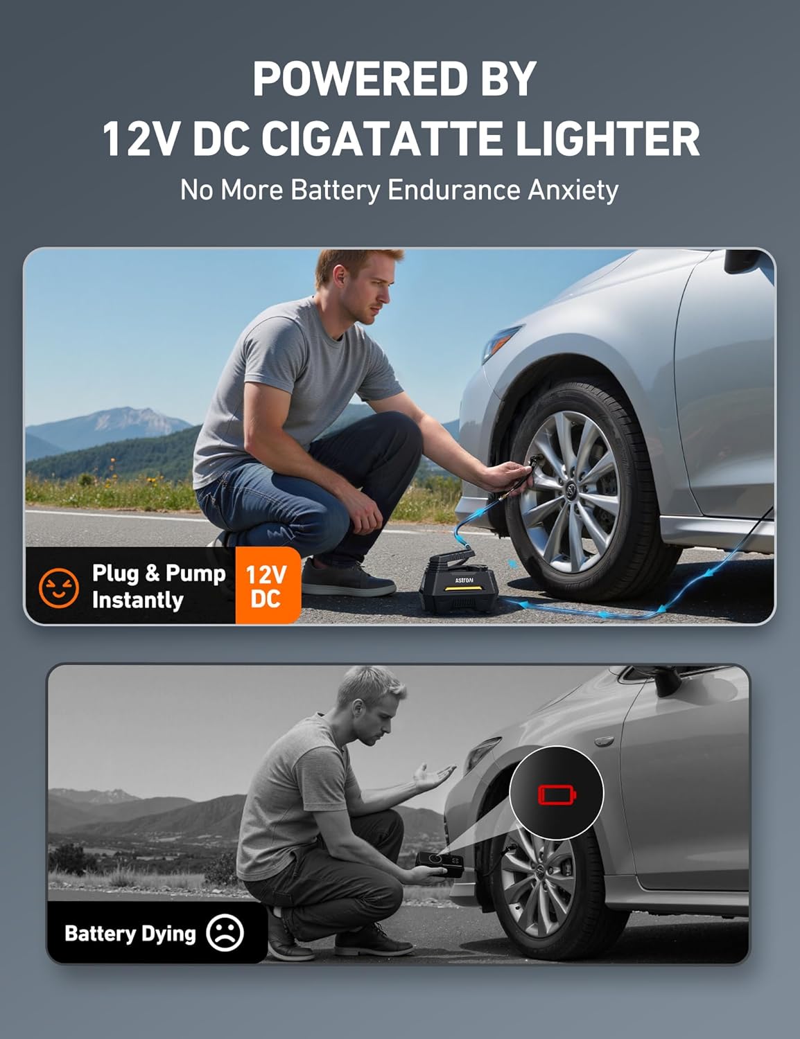 AstroAI Tire Inflator Portable Air Compressor Tire Air Pump for Car Tires - Car Accessories, 12V DC Auto Pump with Digital Pressure Gauge, Emergency LED Light for Bicycle, Balloons, Yellow