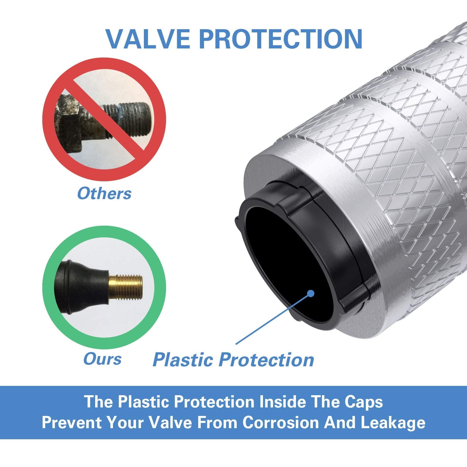 - Why Choose CKAuto Valve Stem Caps? CKAuto is a professional brand for supplying tire maintenance accessories. Our aluminum cap fits for most cars and motorcycles. The plastic protection inside the caps protect your valve stem from chemical damage.