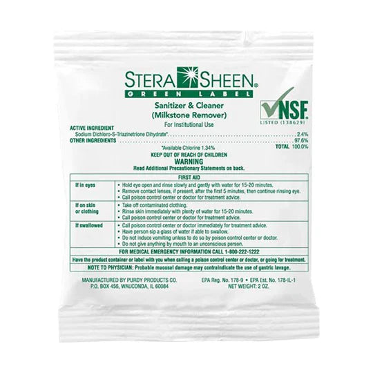 - 2 x 2 oz. Packets of Stera-Sheen Green Label Foodsafe Sanitizer