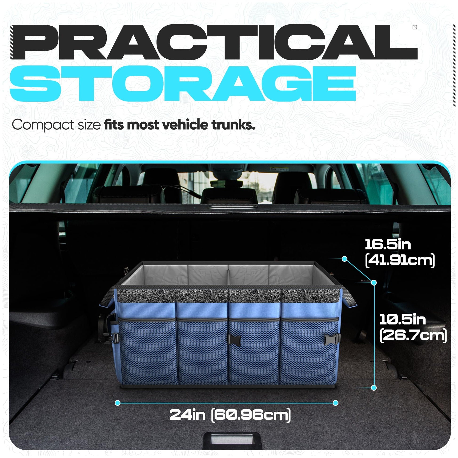 - One Year Warranty No matter if its a large truck, SUV or sedan, this car tote is perfect for any size trunk. Your car storage trunk organizer is covered for a full year!