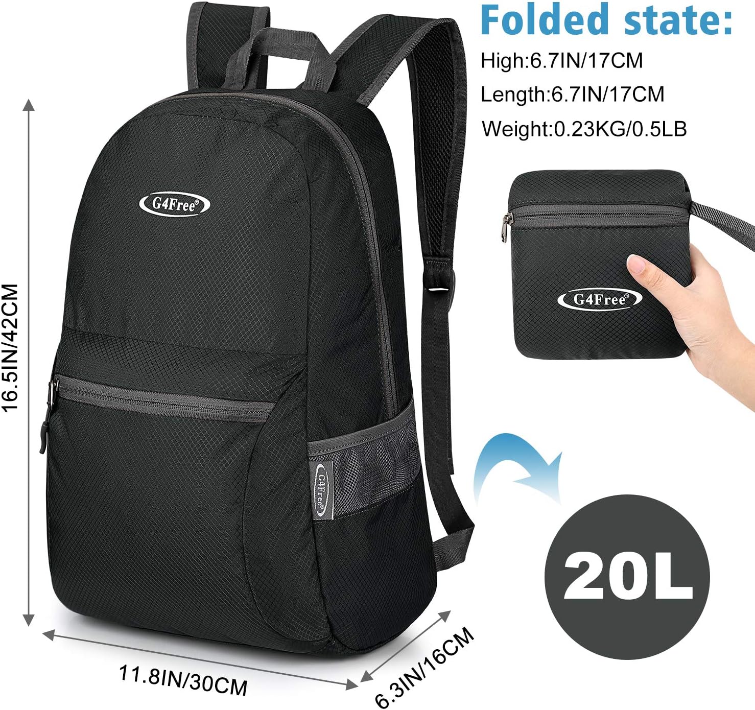 G4Free 20L Lightweight Packable Backpack Foldable Travel Hiking Daypack for Men and Women