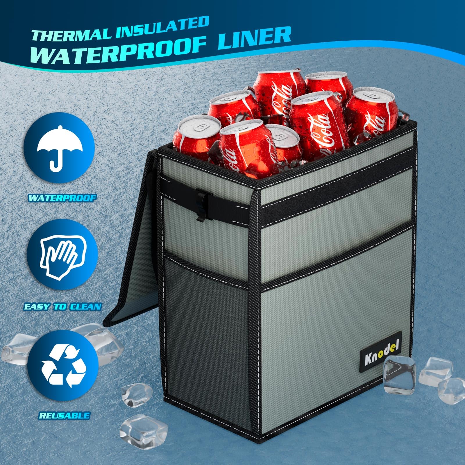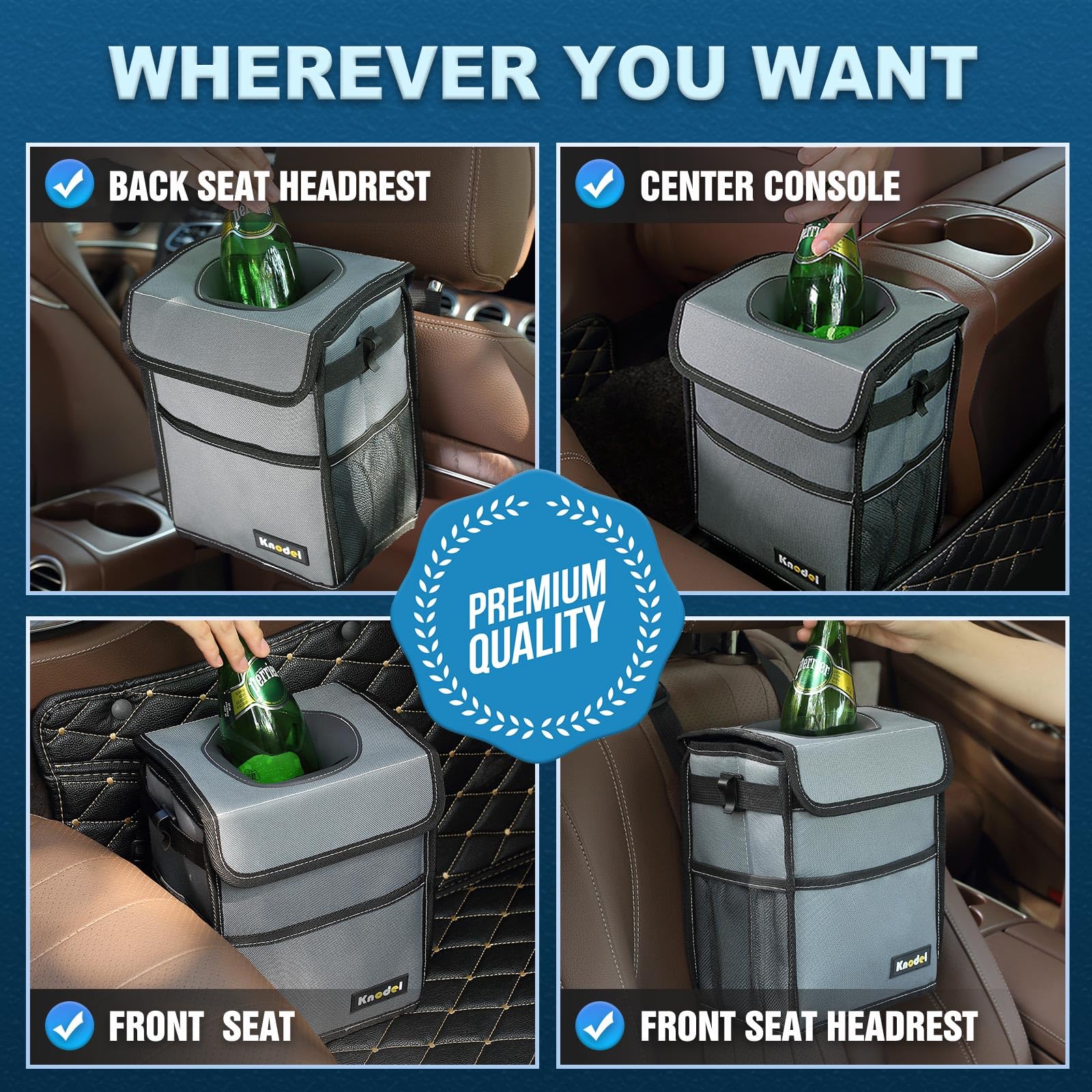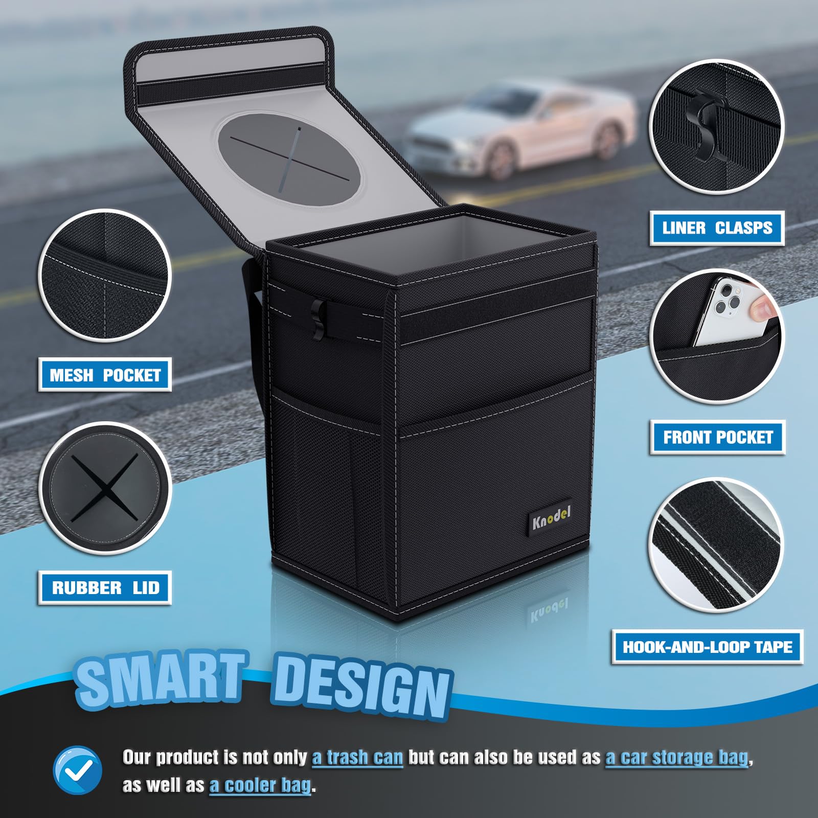 - GIVES YOU A CLEAN CAR: Due to the sufficiently long adjustable straps, the K KNODEL car trash can is able to be placed anywhere, so it is suitable for all kinds of vehicles. With a large storage capacity, you can throw all kinds of trash into it, while it gives you a clean and tidy car.
