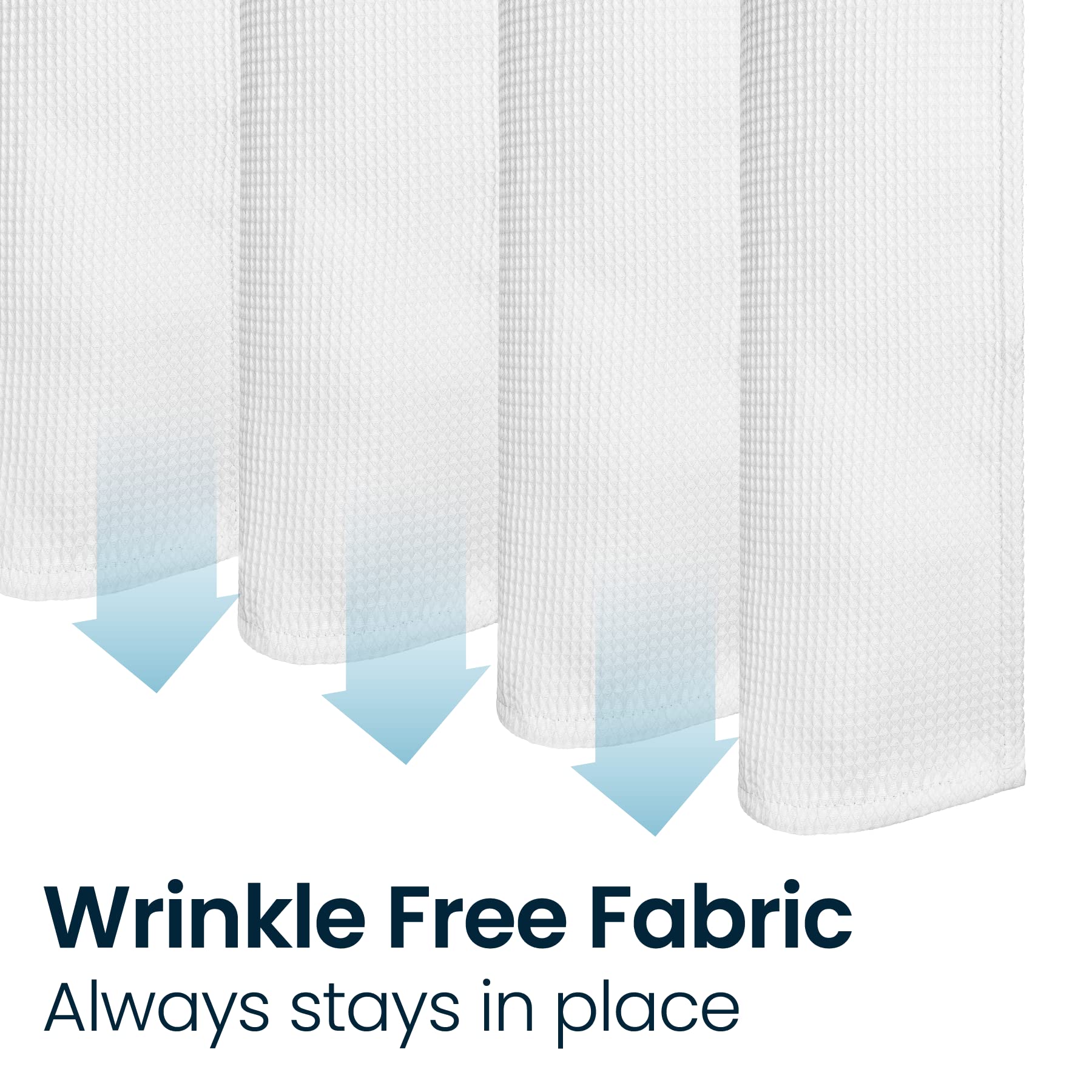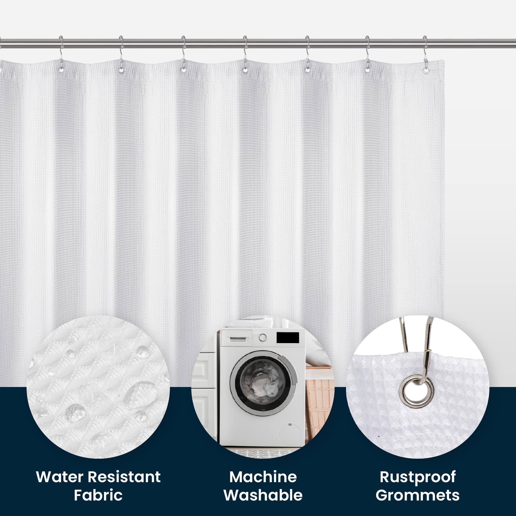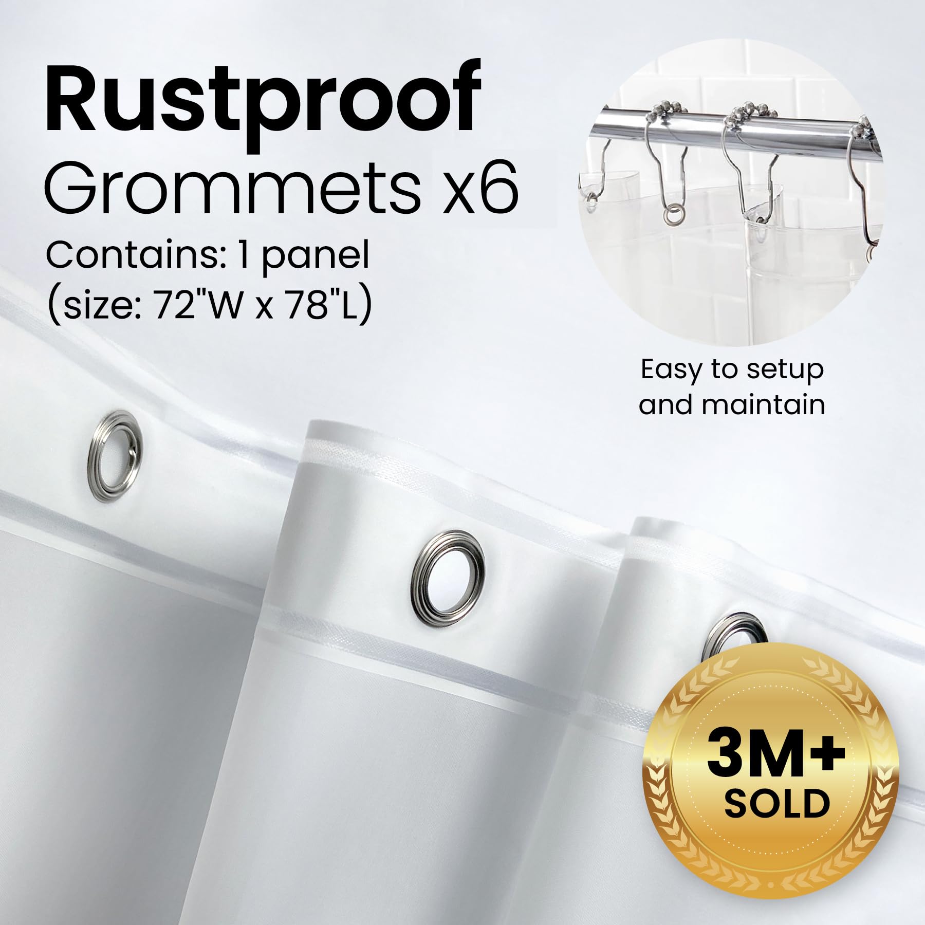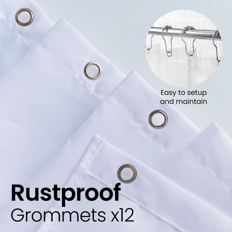 - WATERPROOF DESIGN - Ultra smooth specialty design created to resist water and to promote water bead formation so water swiftly rolls off the surface, keeping your bathroom dry and clean. With 3 timeless color options to choose from, use it as a stand-alone curtain for a bright & airy atmosphere, or pair it with your favorite fabric shower curtain.