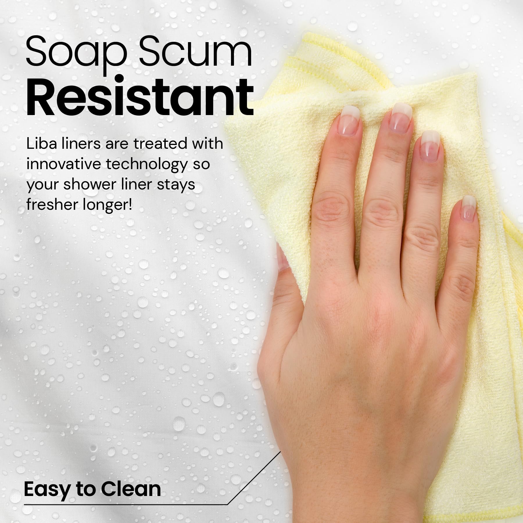 - CONVENIENT & DURABLE- Measuring 72" x 72", the Liba shower liner fits any standard size shower or tub, whether you have a straight or curved shower rod! Three heavy duty magnets on the bottom keep the curtain in place- and away from your body. Features 12 rust-proof metal grommets and a reinforced header that prevents tearing and ensures long-term functionality.