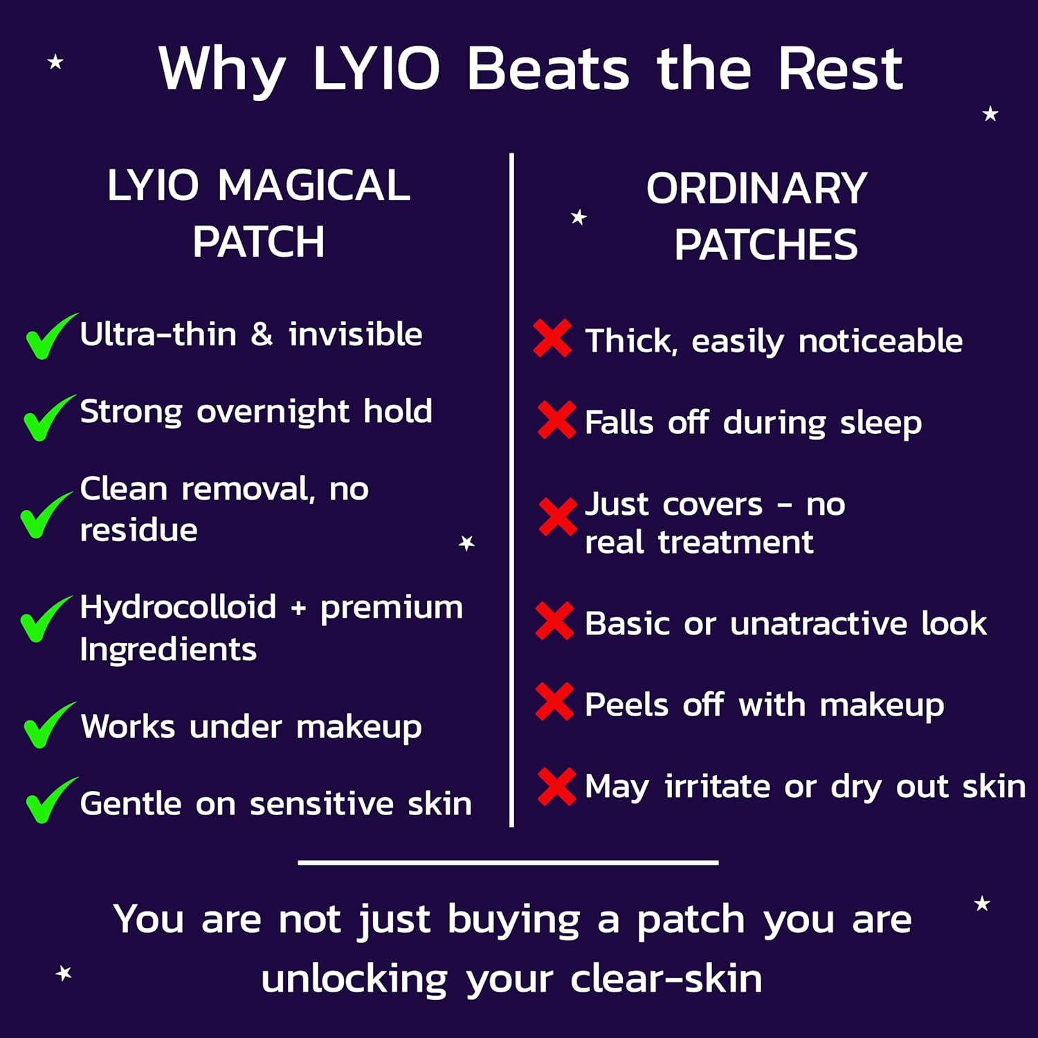 - Flawless & Invisible Under Makeup – LYIO MAGICAL PATCH blends seamlessly into your skin, vanishing under makeup or bare face for clear, confident beauty anytime.