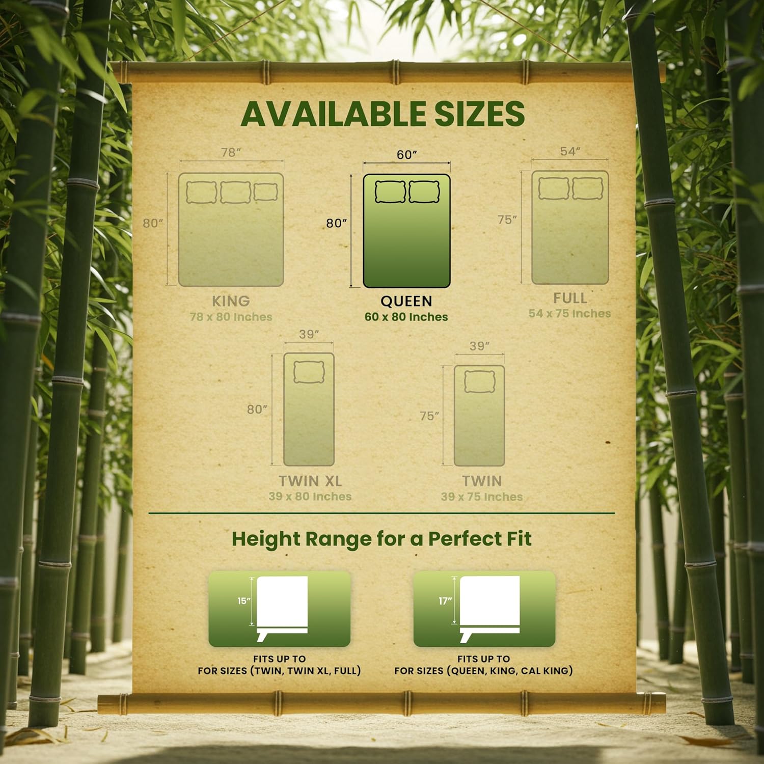 - Mattress Protector: Queen size mattress protector measures 60x80 inches - fits up to 17 inches deep; fitted cover style design with elastic all around.
