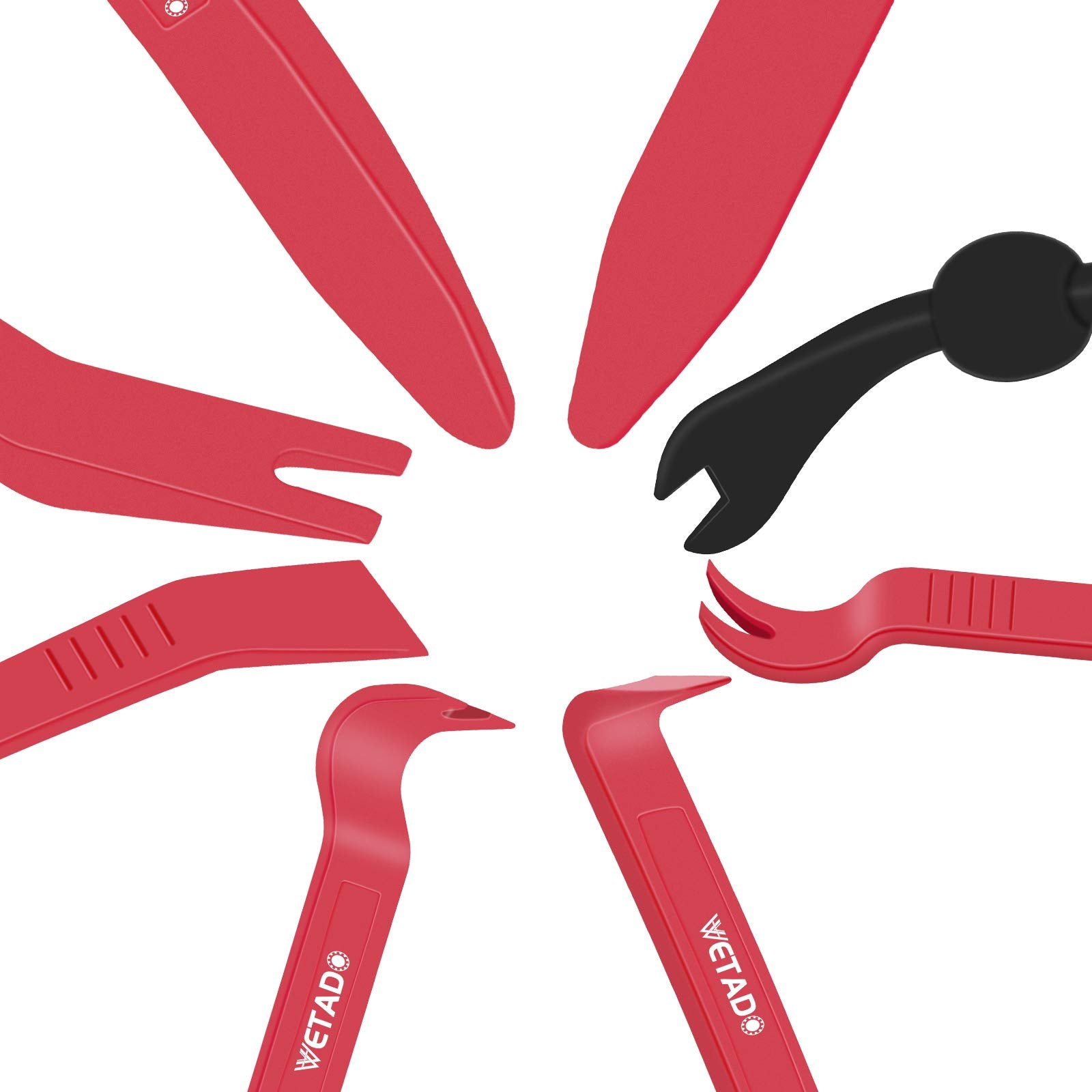 Wetado Trim Removal Tool, Car Upholstery Repair Kit, Car Door Audio Panel Trim Removal Set, Fastener Terminal Remover Tool Set Clips Pry Kit Auto Clip Pliers (8PCS Red)