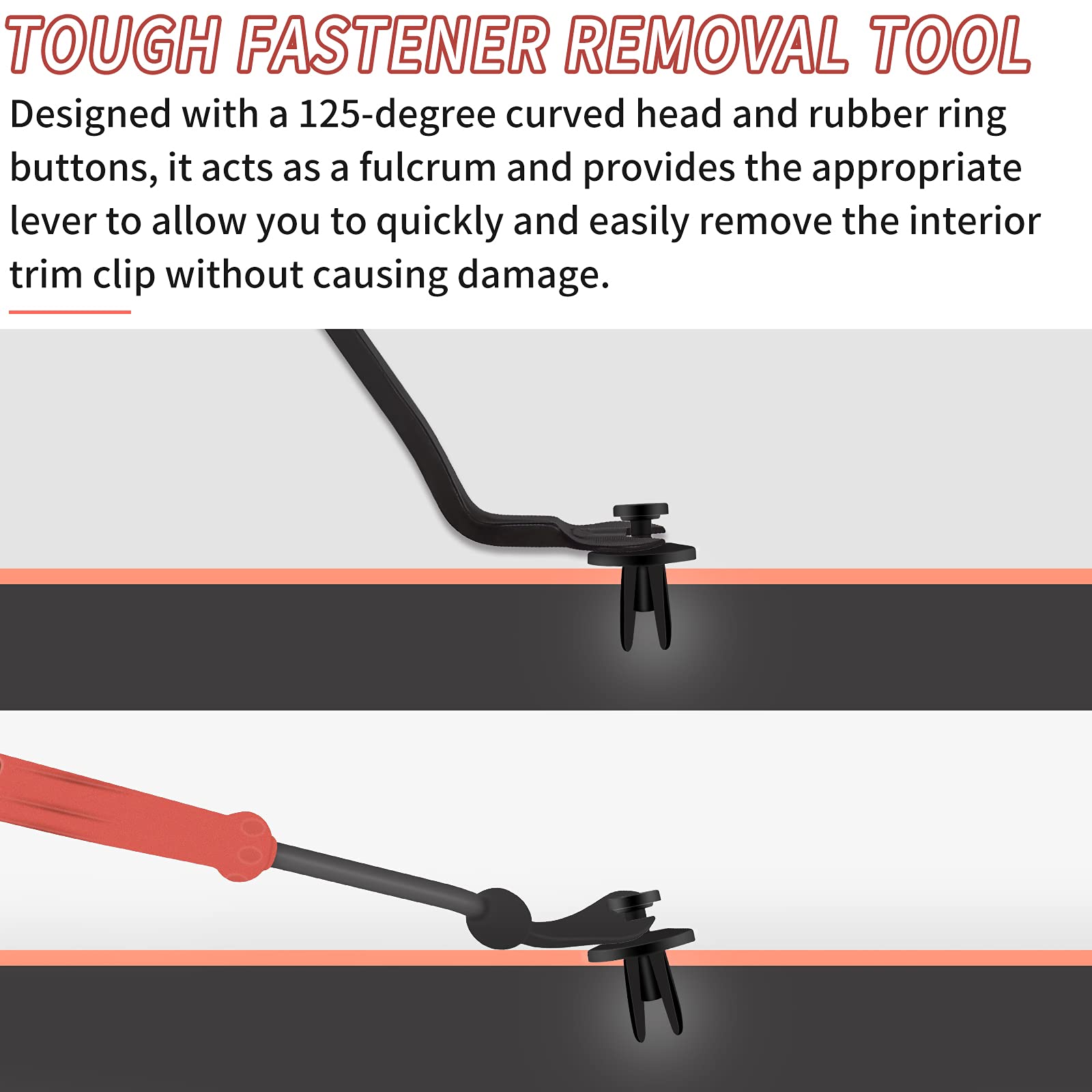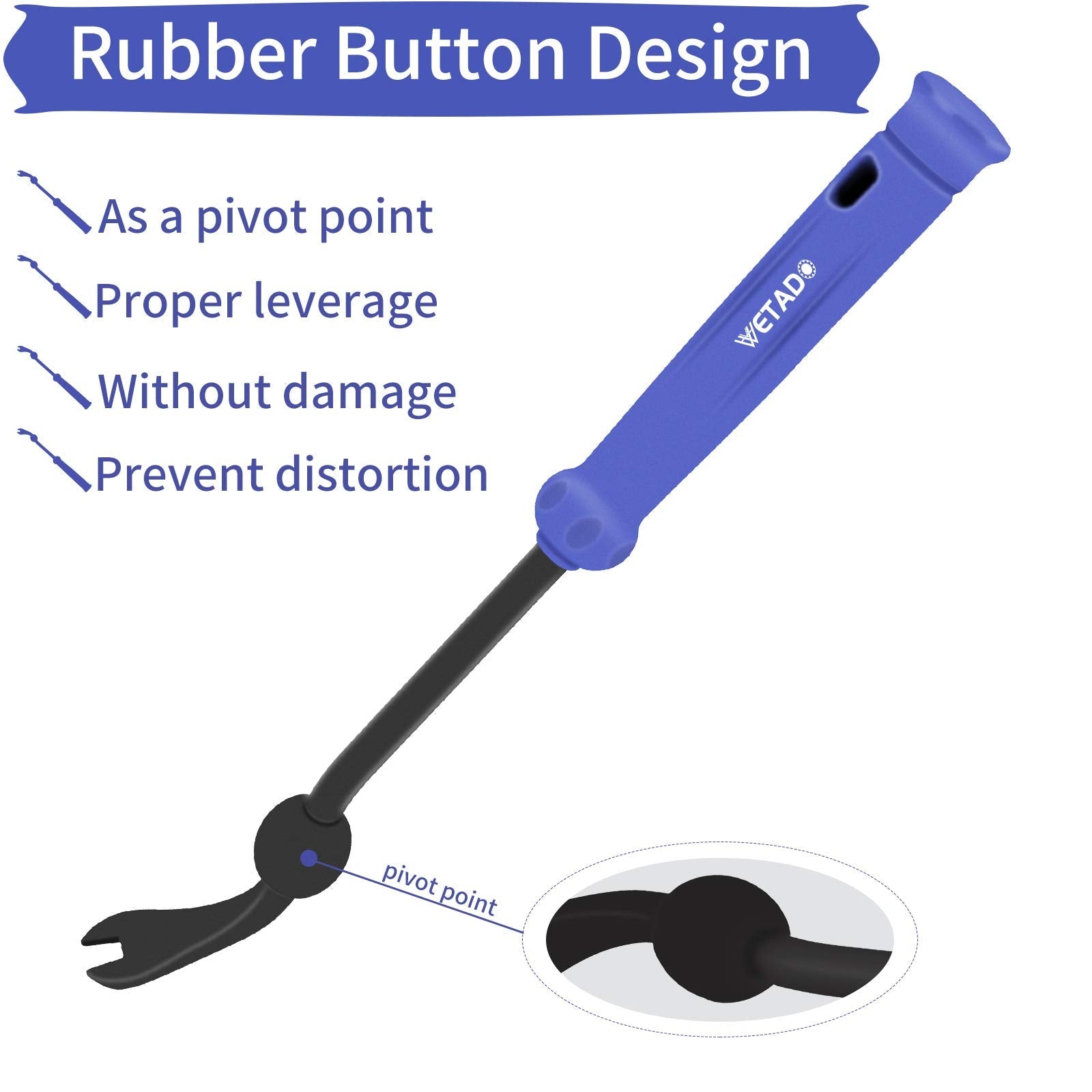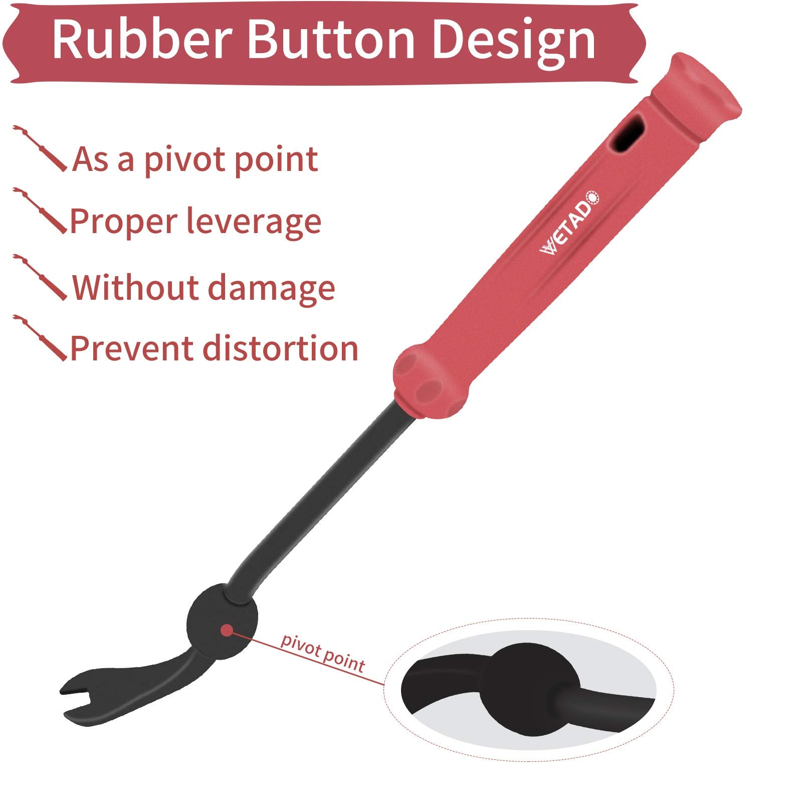 - π[ UPDATED FASTENER REMOVAL TOOL ] - Equipped with rubber buttons and soft curved head design, can be used as a pivot point to provide proper leverage, quickly remove the nails, clamps, door panels, dashboards and interiors, etc., and it will not damage your car body.