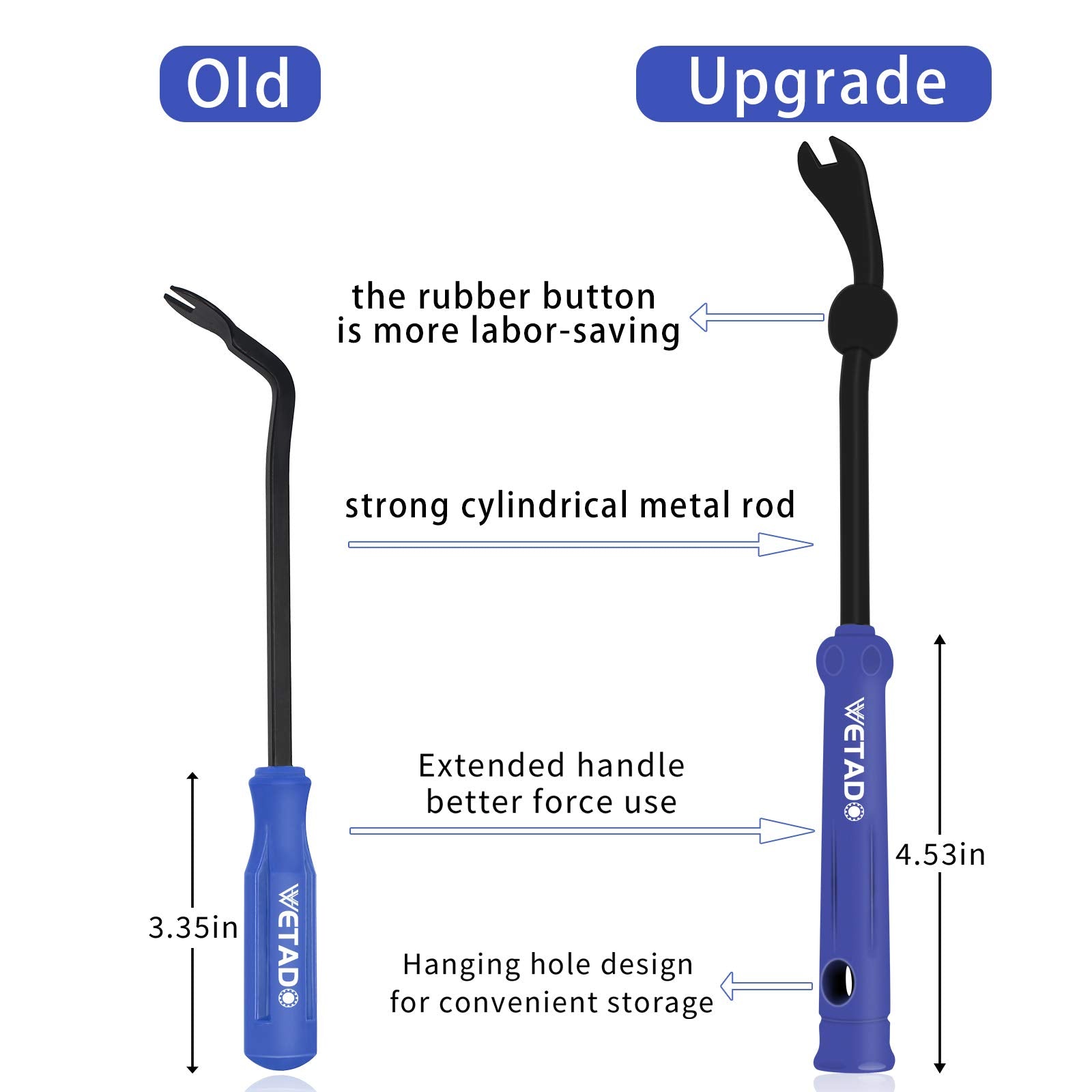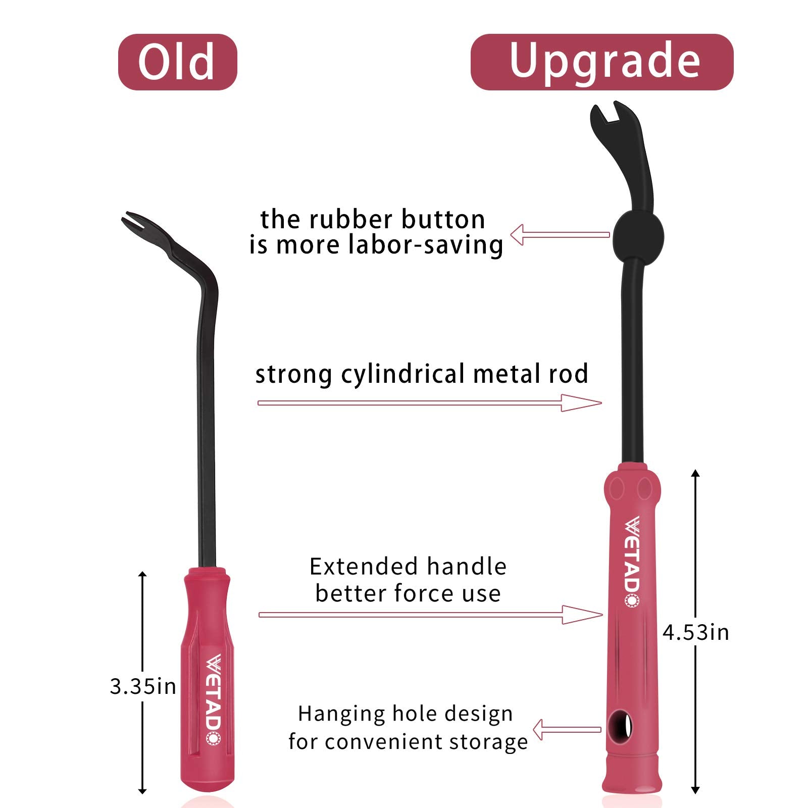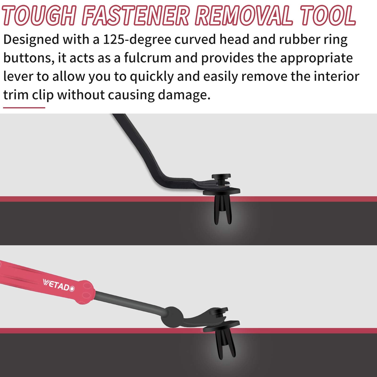 - π[ UPDATED FASTENER REMOVAL TOOL ] - Equipped with rubber buttons and soft curved head design, can be used as a pivot point to provide proper leverage, quickly remove the nails, clamps, door panels, dashboards and interiors, etc., and it will not damage your car body.