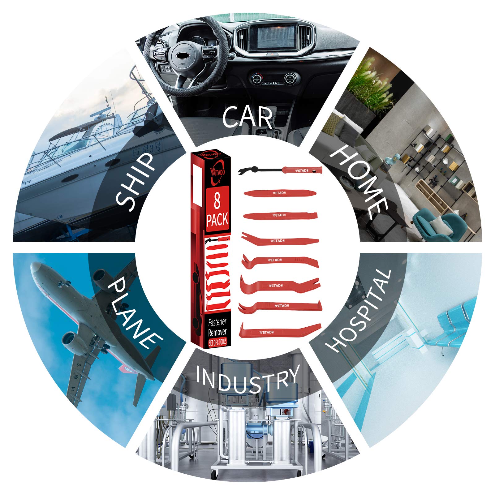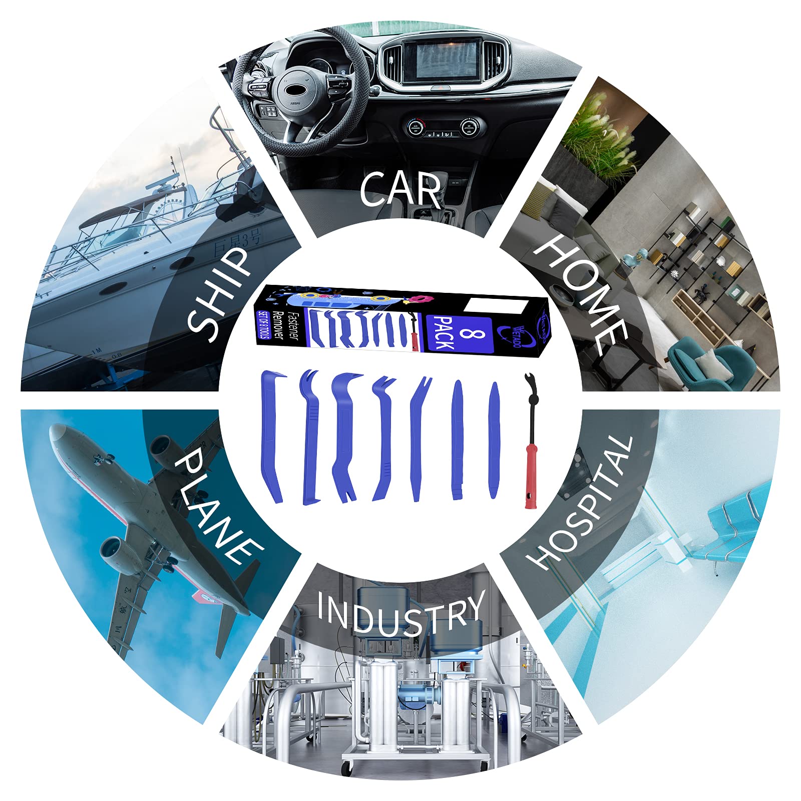 - π[ REASONABLE 7+1 TRIM REMOVAL TOOL KIT ] - Carefully selected tools of different sizes and shapes for universal usage. Perfect for removing trim, door panels, moldings, window trims, clips, fasteners, emblems, etc.